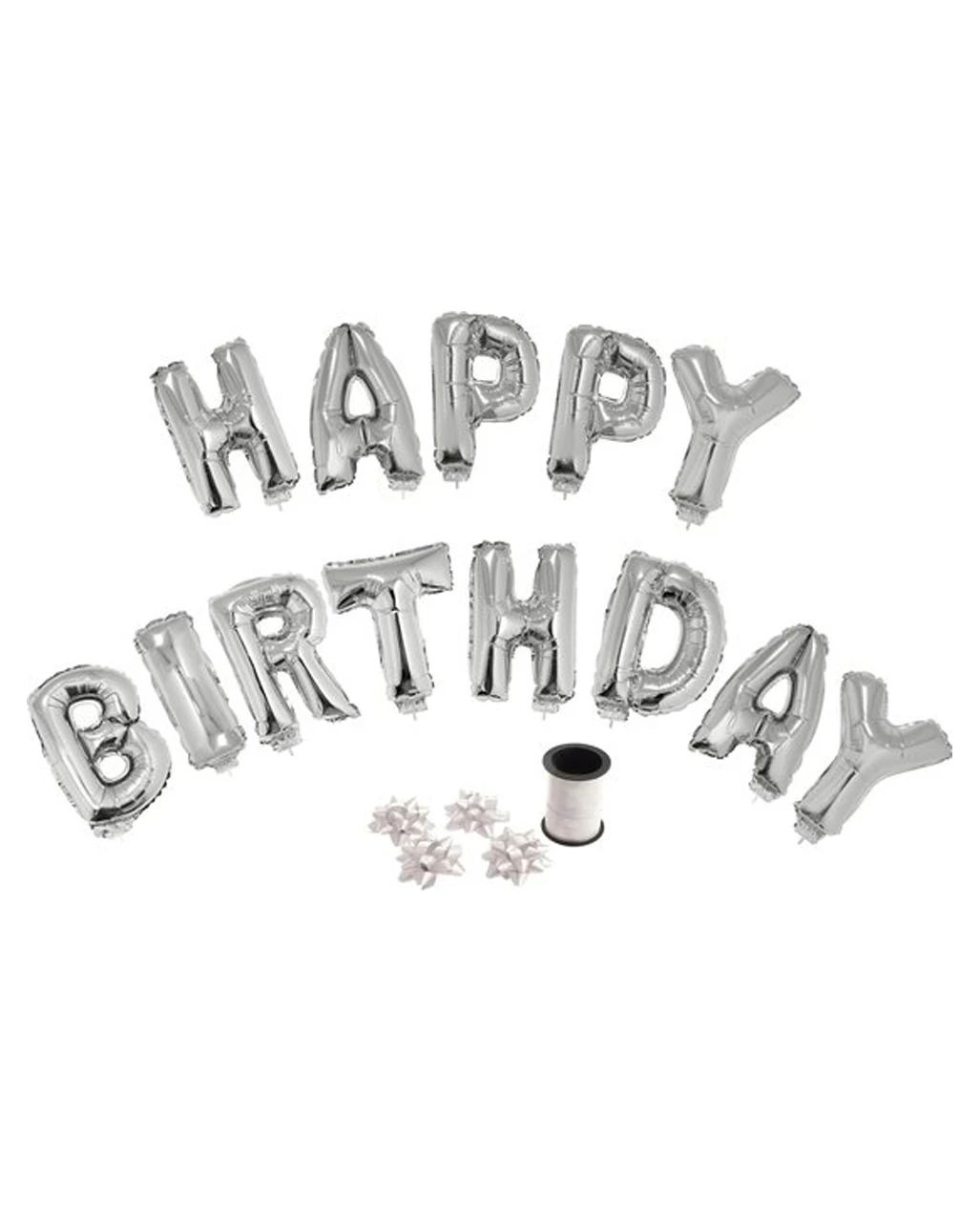 Eindrucksvolle Geburtstagsgirlande aus silberglänzenden Buchstabenballons