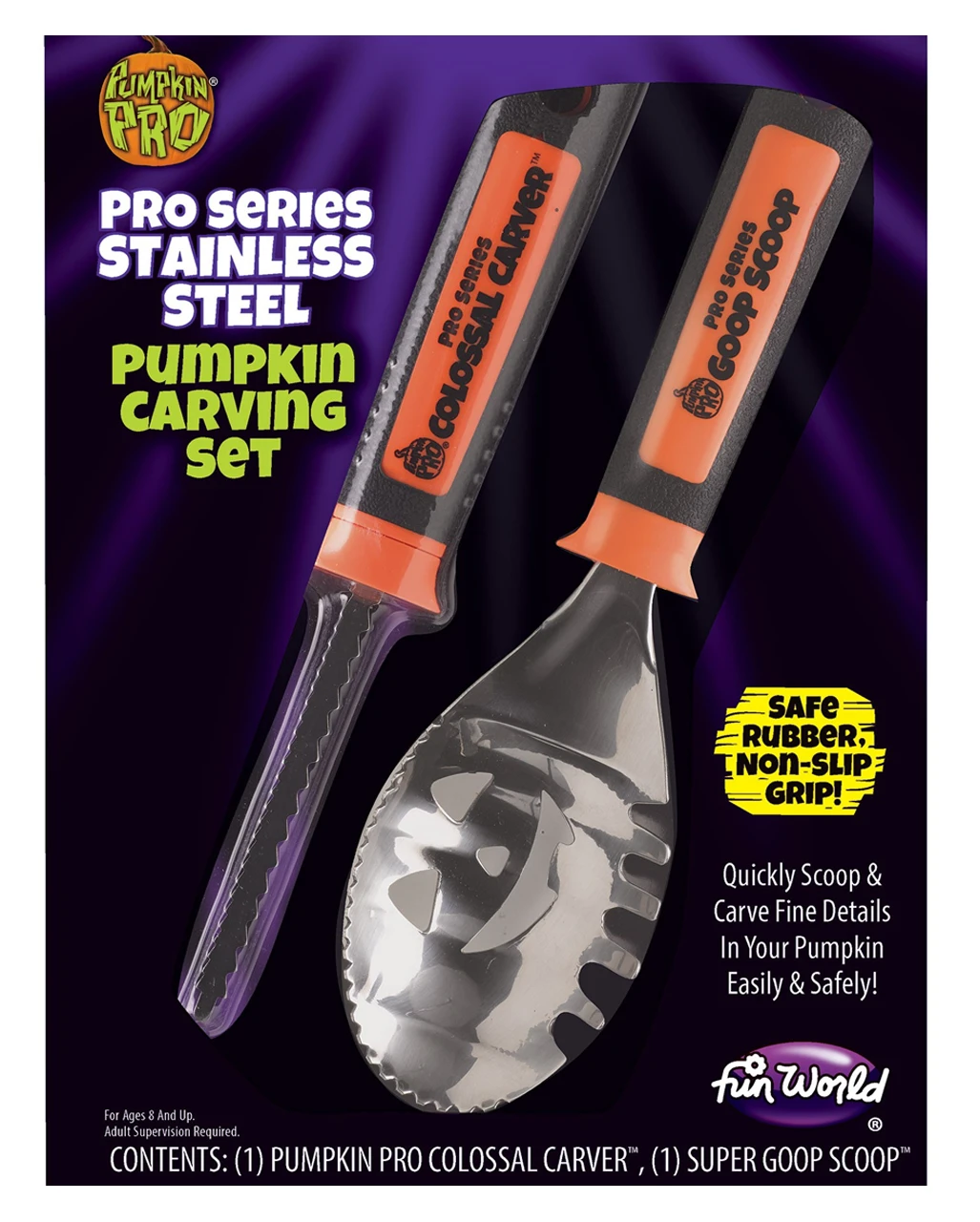 Das 2 tlg. Kürbis Schnitzset enthält einen Löffel zum Aushöhlen und ein professionelles Schnitzmesser. Durch die komfortablen Gummigriffe liegt das Kürbis Schnitzwerkzeug sehr gut in der Hand. Das Schnitzset besticht durch hohe Qualität und ist bestens für präzise Schnitzarbeiten geeignet. Entdecke auch unser 3-teiliges Kürbis Schnitz Set