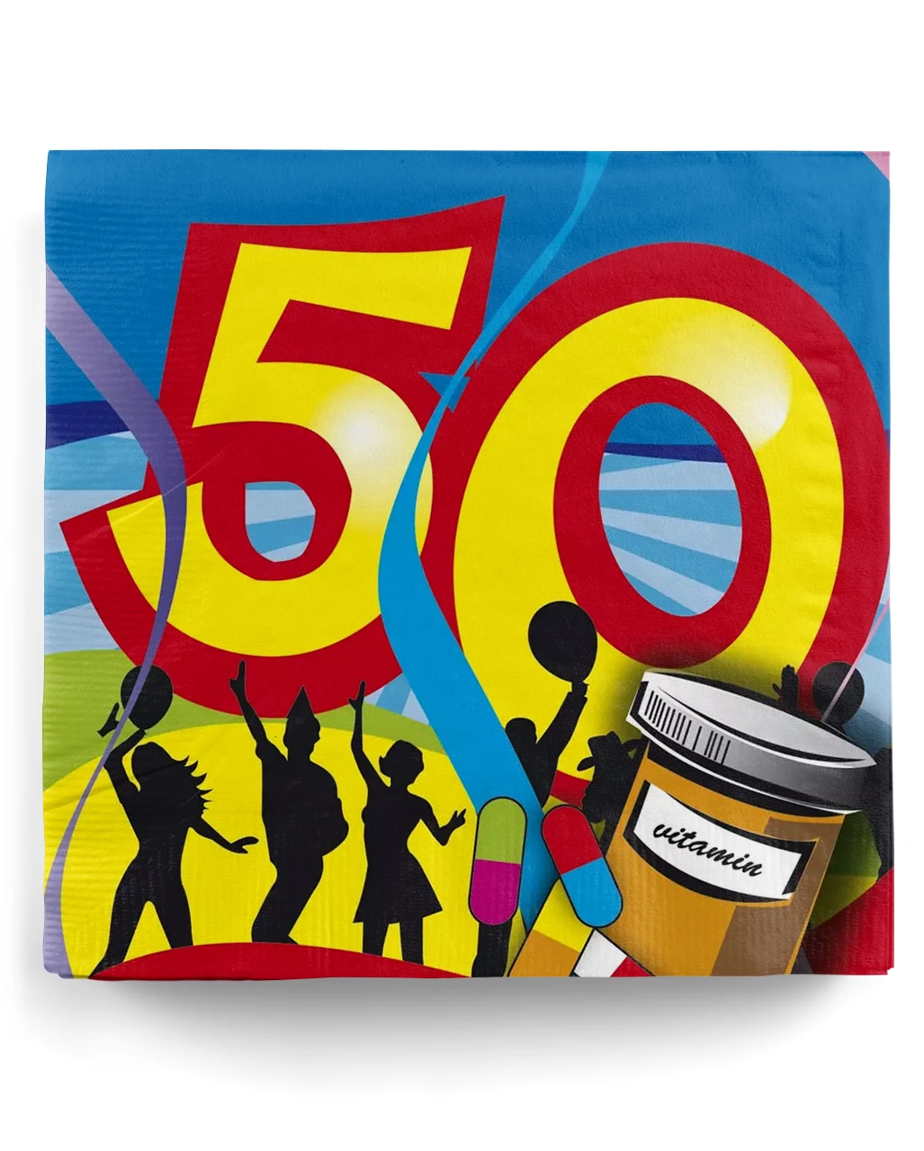 Der fünfzigste Geburtstag sollte ordentlich gefeiert werden! Mit den 50. Geburtstag Servietten Swirls kannst du deine Partylocation ideal dekorieren. Das Motiv mit schwarzen Party-People & Vitamin-Bombe sorgt für die passende Stimmung.