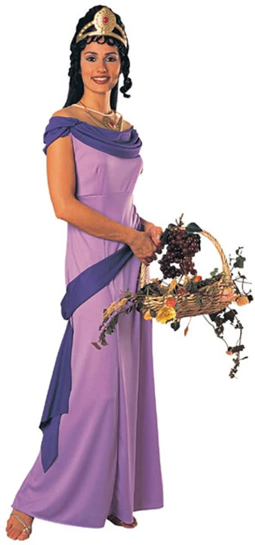 Das 3-teilige Kostümset bestehend aus dem Kleid,dem Haarreif und der Kette,ist im Stil der Griechischen Göttin Olympia.Das fliederfarbene Outfit macht dich zur Göttin. Der bezaubernde goldene Haarreif mit rotem Diamand funkelt und bringt jeden Spartaner auf die Knie. Die selbe Form spiegelt sich in der goldenen Kette wieder. Passend dazu ist die Griechische Göttin Sandaletten gold.