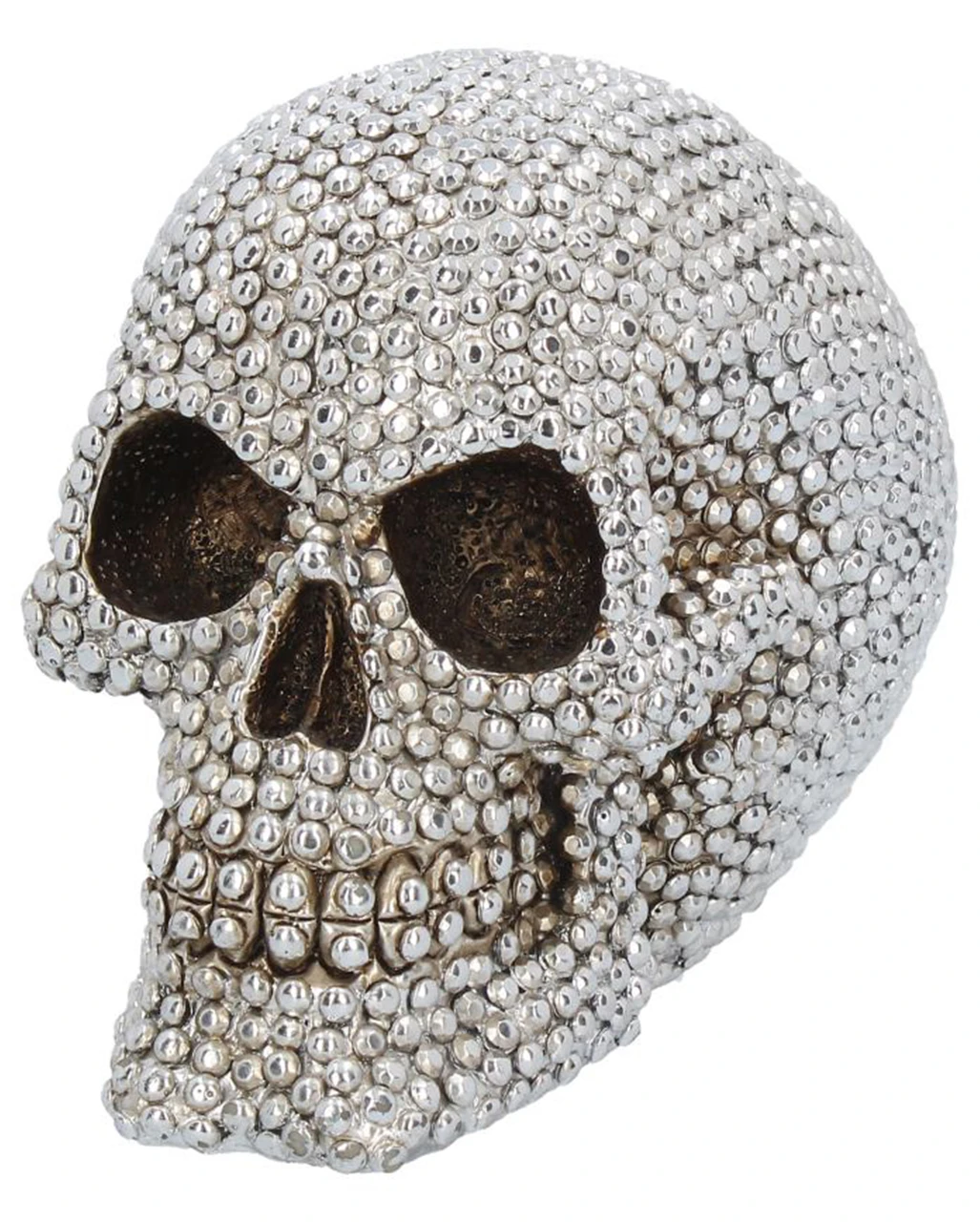 Hol dir den Aurora Borealis Totenschädel, wenn du deine Gruft mit ein bisschen Glamour ausstatten willst. Auch über den Tod hinaus sollte es nicht an ein bisschen Prunk und Pomp mangeln. Der grinsende Totenkopf ist mit seinen falschen Juwelen die perfekte Dekoration auf dem Kaminsims, einem Sideboard oder in einer Vitrine. Der grinsende Schädel sieht aus, als hätte Damien Hirst ein paar Diamanten übrig gehabt. Nur die schwarzen Augenhöhlen und die Nasenlöcher durchbrechen das morbide Meer aus funkelndem Glamour.
