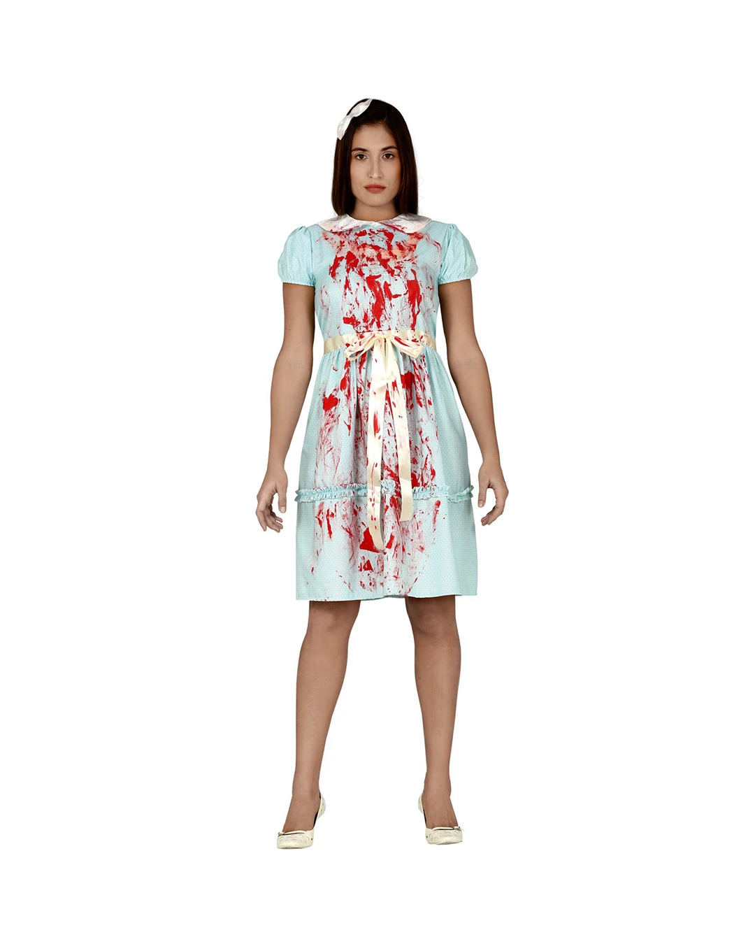 Mit Blutflecken besetztes Halloween Damenkleid als Zwillingskostüm