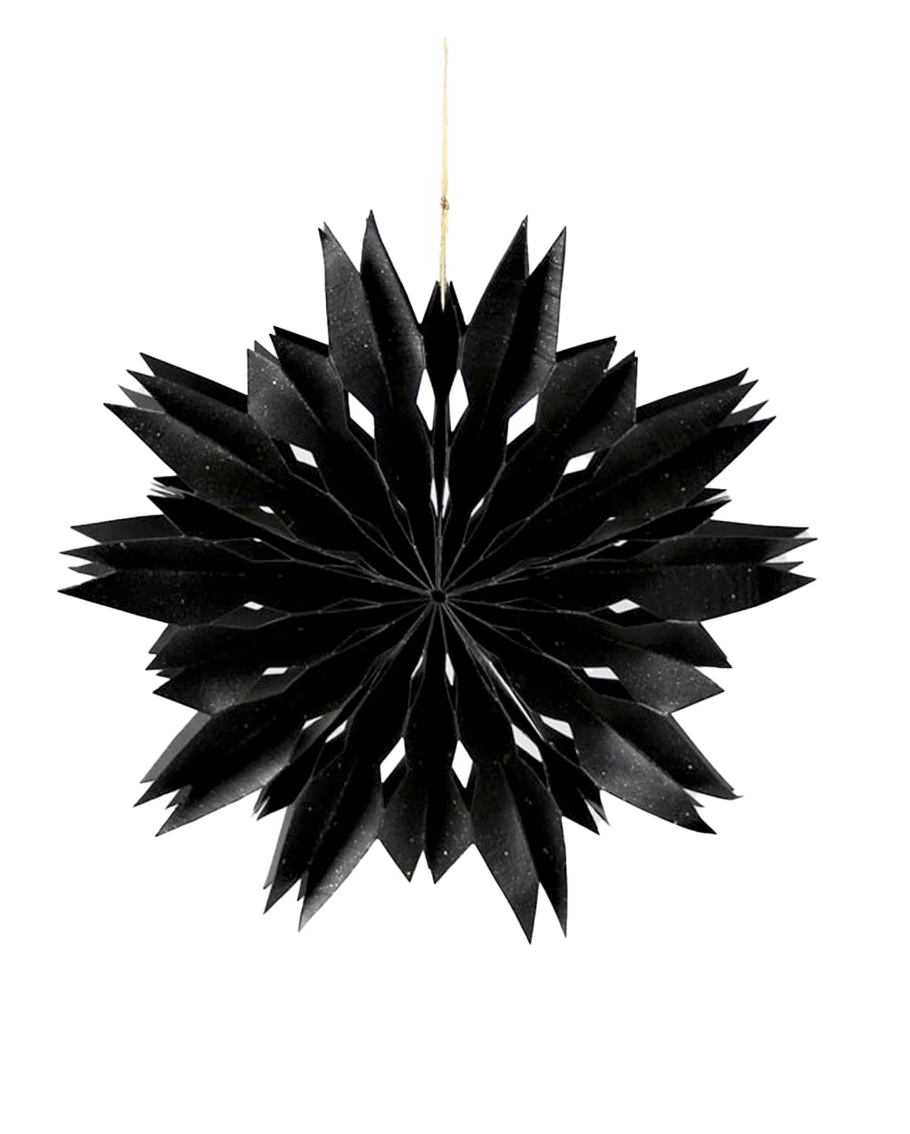 Mit dem wunderschönen Dunklen Deko Stern im Schneeflocken Design bringst du edle Stimmung in deinen Wohnbereich. Hochwertig gefaltetes Papier mit komplett schwarzer Oberfläche machen die Schneeflocke zur perfekten alternativen Deko für Schlafzimmer, Fenster, Bücherregal und Weihnachten.