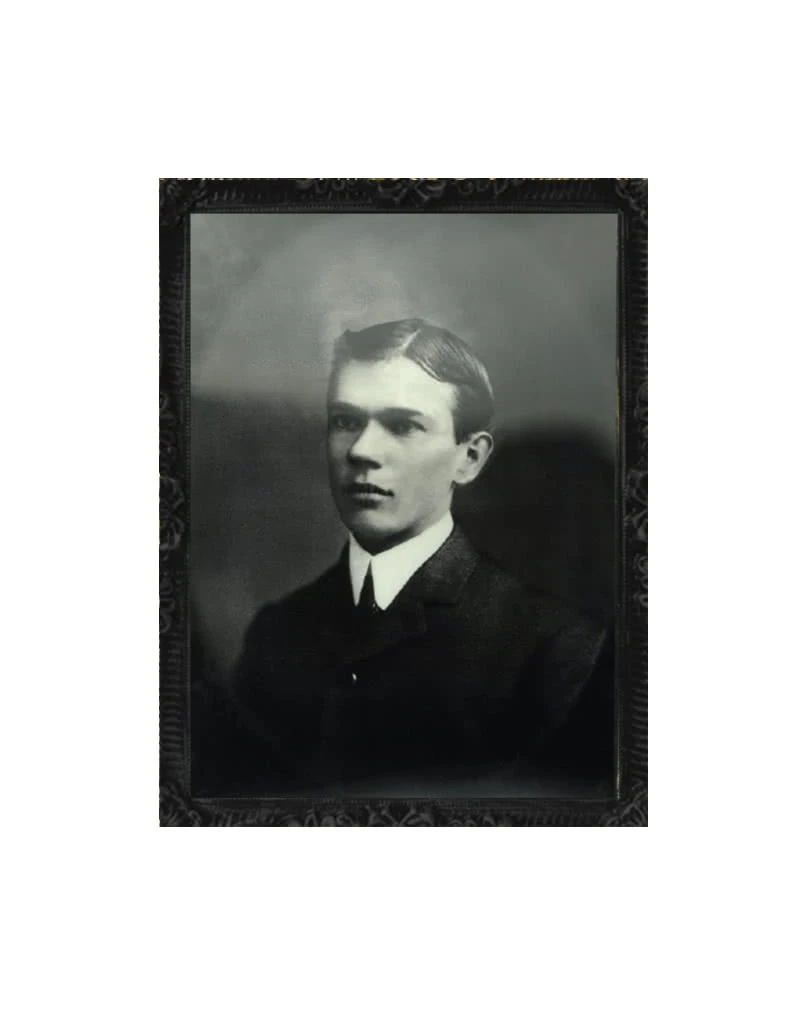 Der Junge Mann mit Mantel und Krawatte verwandelt sich je nach Blickwinkel in einen besessen Dämon mit spitzen Ohren und Hörnern. Diese optische Täuschung verdankt das Wackelbild dem typischen Wackelbild Effektes. Zudem wirkt das Bild besonders schön an der Wand durch den mit Schnörkeln verzierten Rahmen.