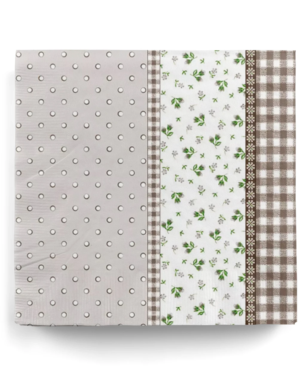 Die wunderschön und detailverliebt designten Papierservietten sind dreilaggig und von einer guten Qualität. Sie sind aus feinem Zellstoff hergestellt und besitzen ein Maß von 33 x 33 cm. Das Besondere aber an den Einwegservietten Frühling taupe 20 St. ist das aparte Muster. Die Farben sind dezent, die Dreiteilung in das Muster mit kleinen Kringeln, den Bereich mit den grünen Blumen und den braun-weiß karierten Teil ergeben einen sehr schönen Blickfang auf jedem Esstisch. Passend dazu findest Du bei uns im Shop jede Menge Deko für Deine Feier, wie zum Beispiel den Taupefarbener Ornament Tischläufer 6m Auch weitere Servietten wie die St. Patrick’s Day Kleeblatt Servietten sind bei uns zu haben.