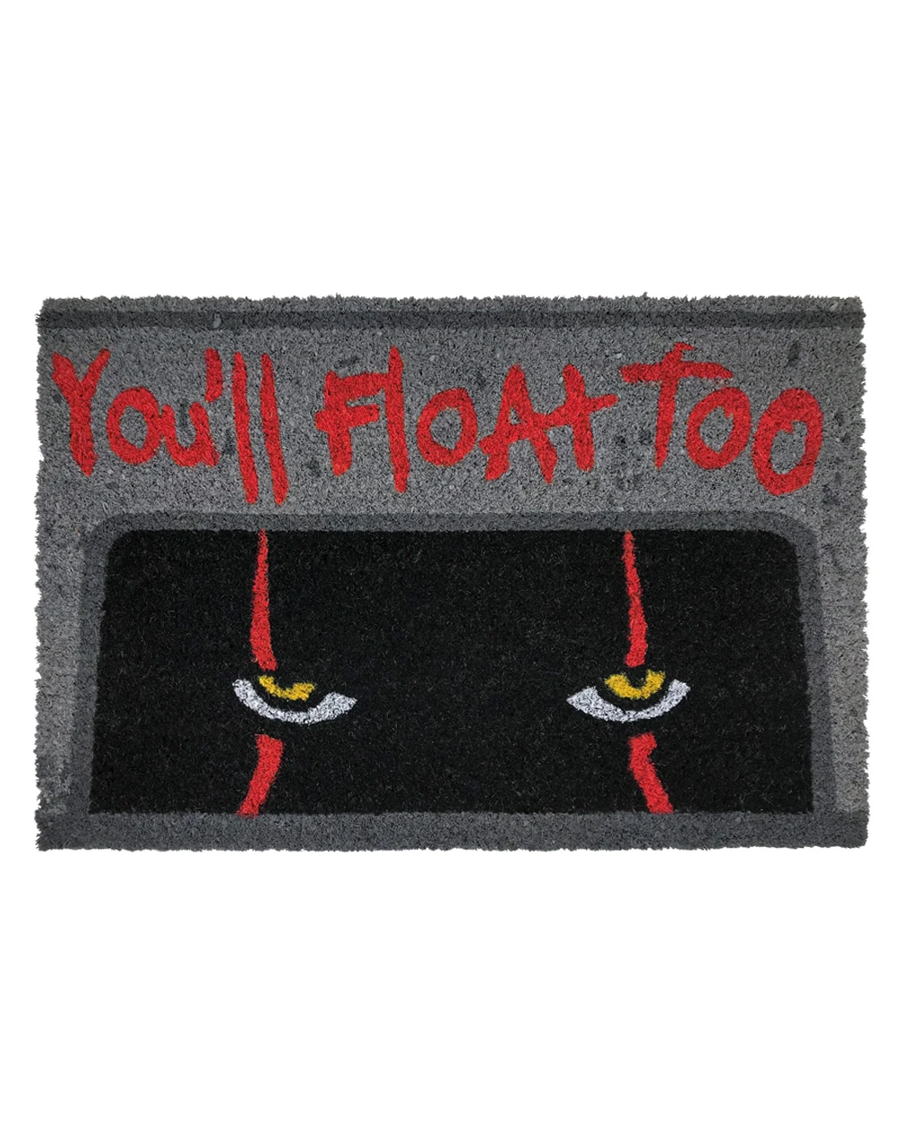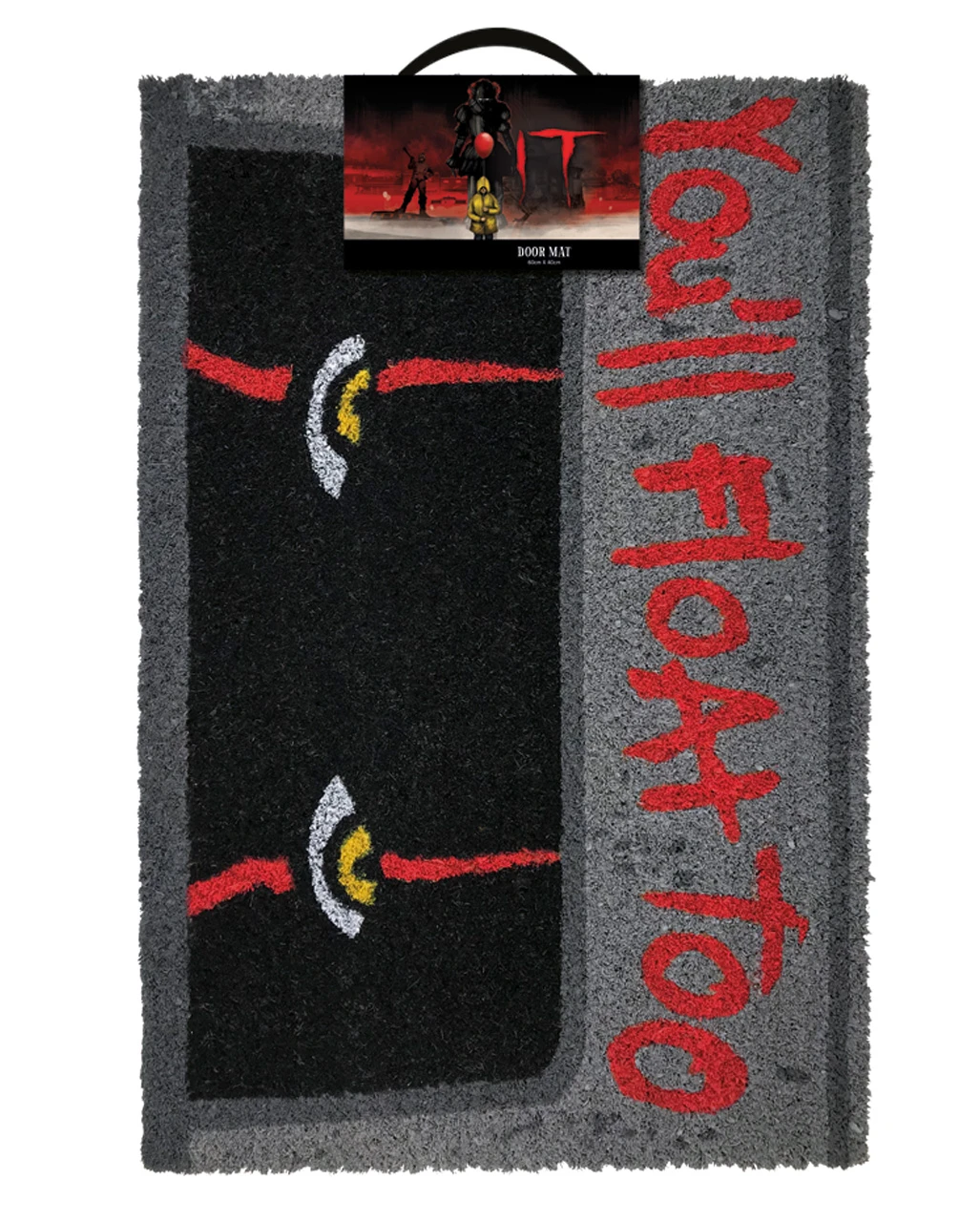 Willst du hier wirklich eintreten? Du weißt ja, wie es dem kleinen Georgie ergangen ist…Lock deine Besucher mit dieser abgefahrenen IT Pennywise Fußmatte in deine heiligen Hallen und lass sie schweben! Die robuste Türmatte aus Kokosfaser ist mit Pennywise-Print verziert und ein echtes Muss für Horror- und Movie-Fans.