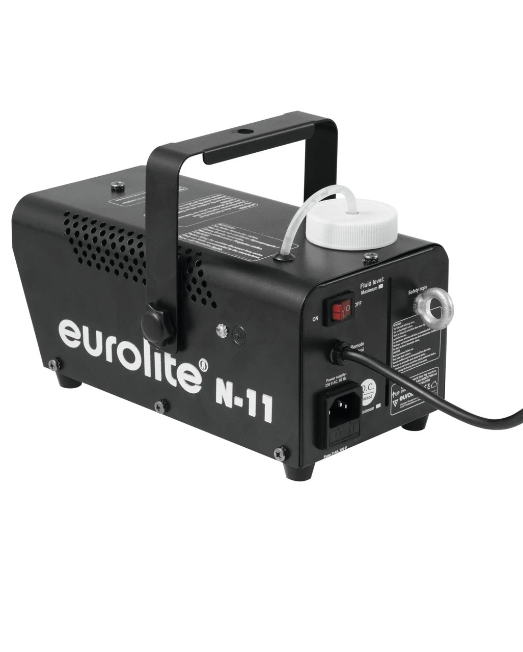 Die EUROLITE N-11 LED Hybrid Blau Nebelmaschine kommt in der Gehäusefarbe Schwarz, sodass diese gut in der Kulisse zu verstecken ist. Die Nebelmaschine wird über die mitgelieferte Fernbedienung mit AN und AUS Schalter manuell gesteuert (kein zeitlicher Intervallschalter). Bei jedem Austoß von Nebel leuchten die blauen Leds auf und beleuchten dabei die Nebelschwaden mit blauem Licht. Die Nebelmaschine verfügt über einen Hängebügel, sodass man die Fog Maschine auch aufhängen kann. Ein Überhitzungsschutz sorgt für extra Sicherheit, während die Füllstandsanzeige dafür sorgt, dass du immer weißt, wann diese mit Nebelflüssigkeit nachzufüllen ist. Passend dazu unser Nebelflüssigkeit Eurolite Nebelflüssigkeit 1l.