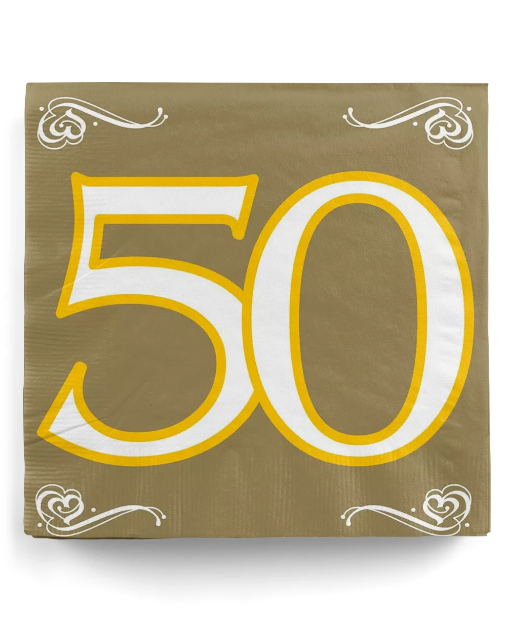 Decke mit unseren goldenen Servietten 50 deinen Tisch festlich zu ganz besonderen Anlässen! Mit den Servietten in edler Optik wirkt deine Tafel sofort perfekt dekoriert, egal ob zu runden Geburtstagen, goldenen Hochzeiten oder wichtigen Jubiläen.