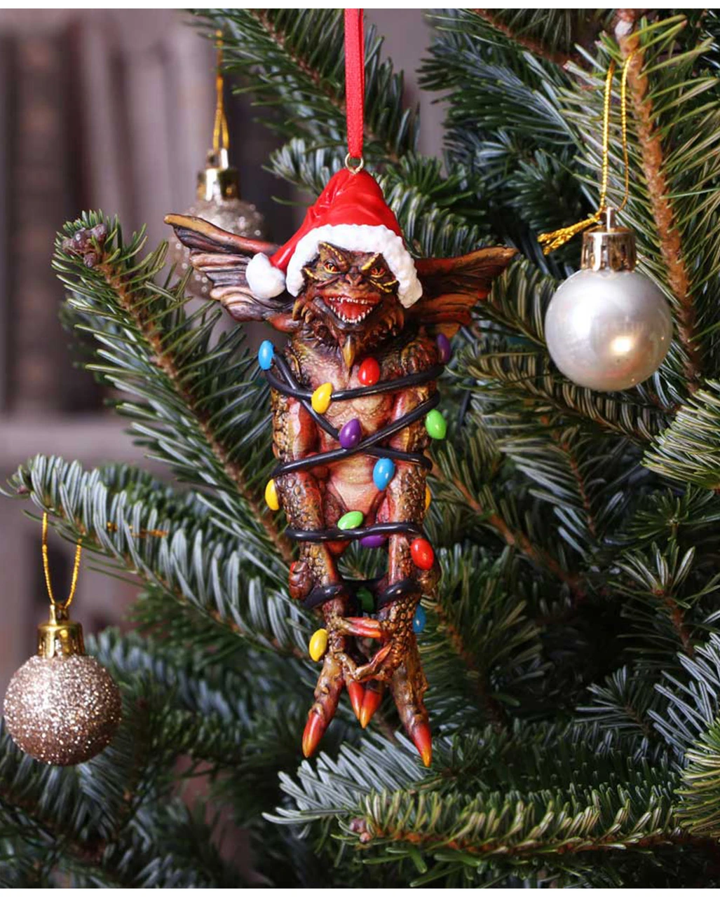 - Gremlin Stripe, eingewickelt in Weihnachtsbeleuchtung