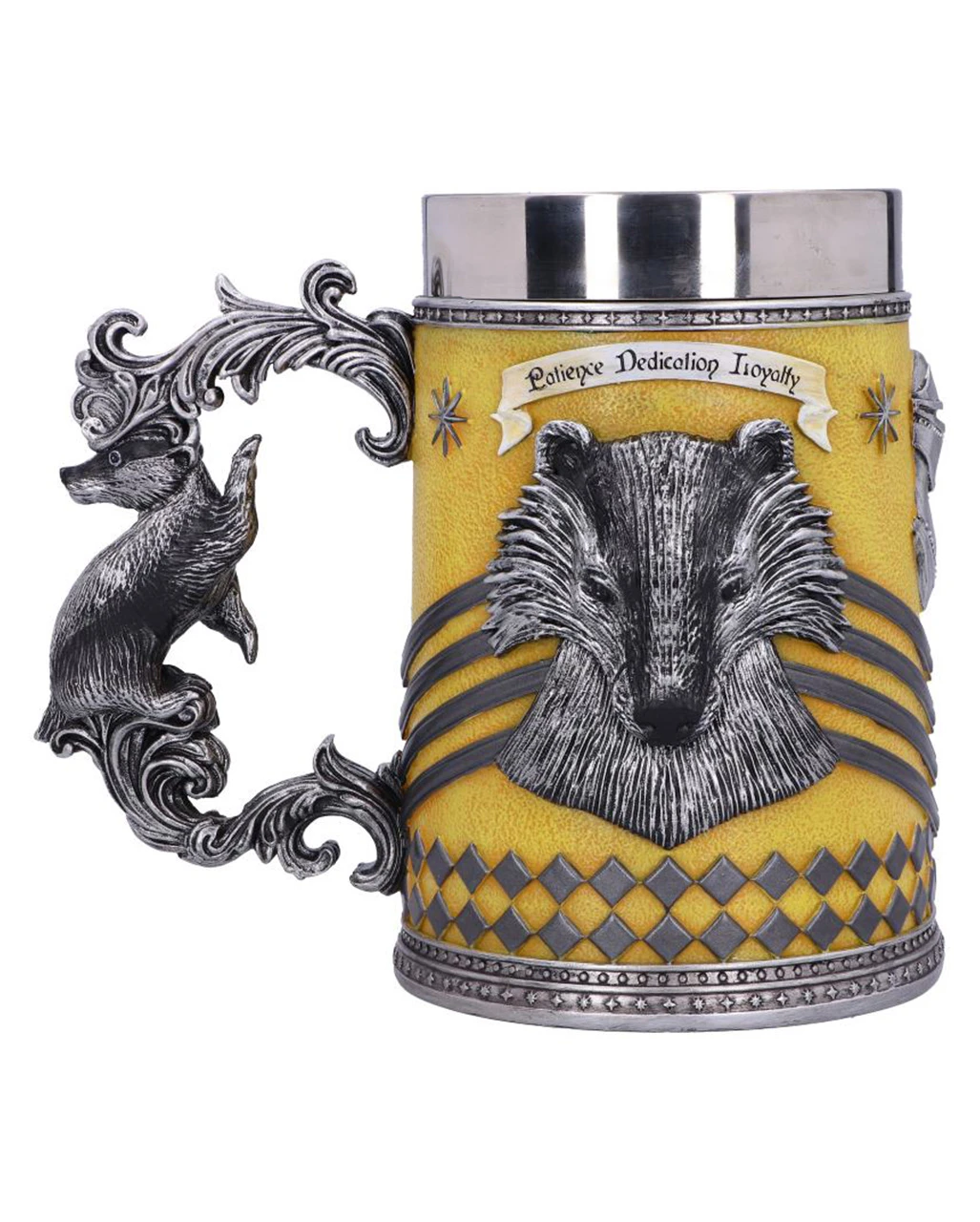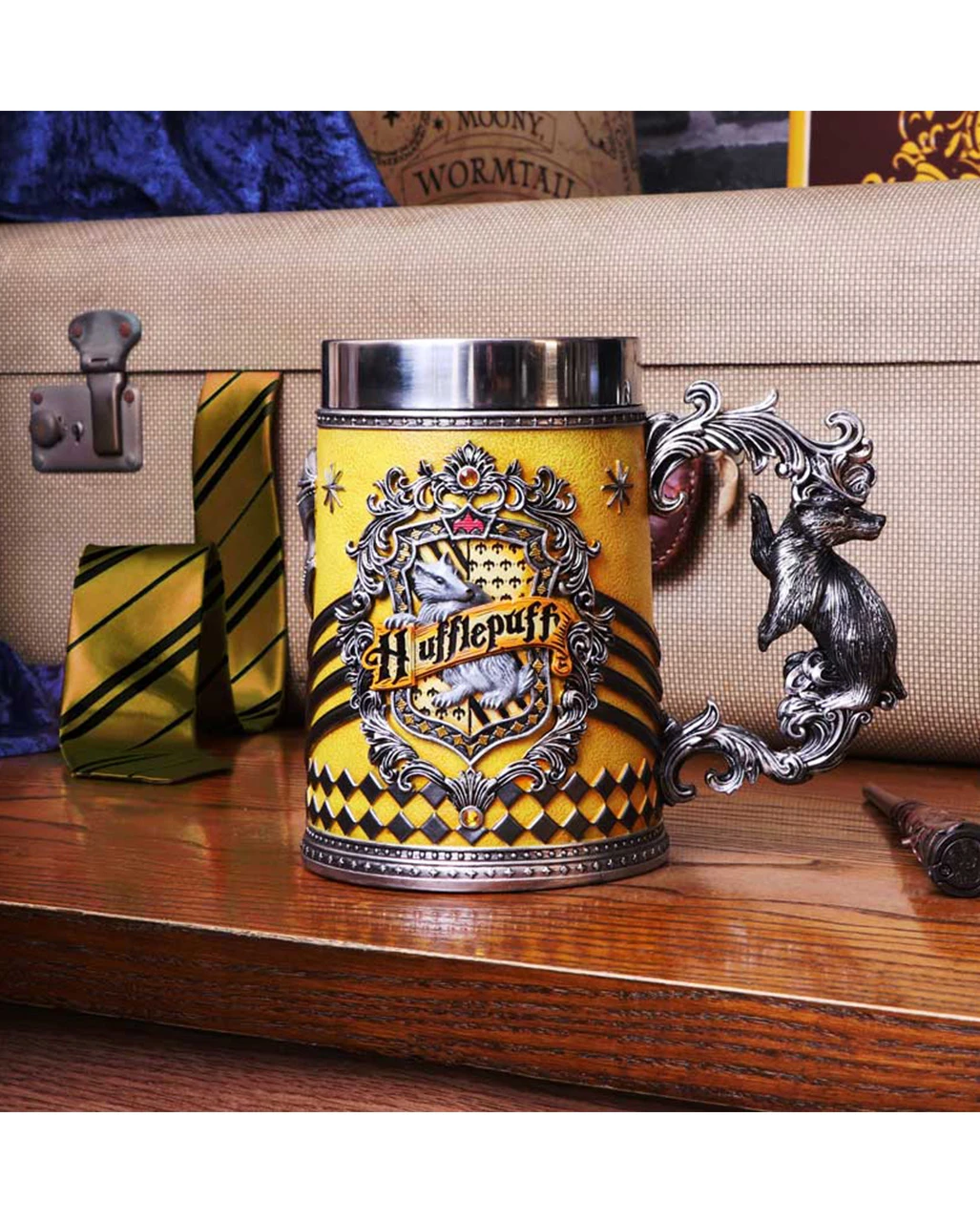 Wunderschön gearbeitetes Trinkgefäß mit Hufflepuff Wappen