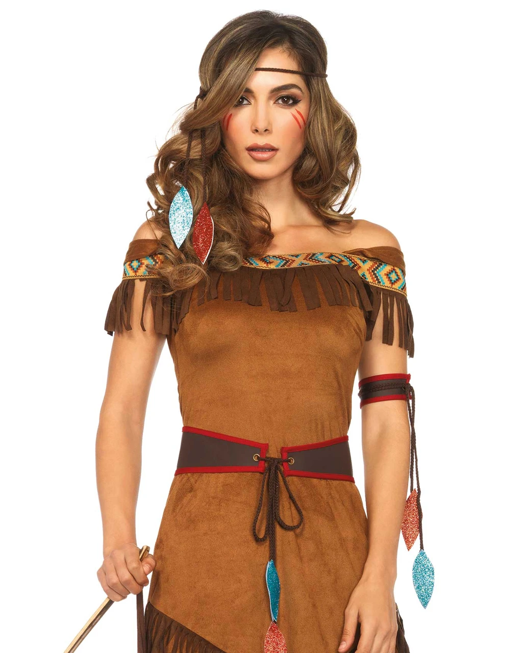 Sexy Indianer Kostüm mit Kopfband, Armband & Gürtel