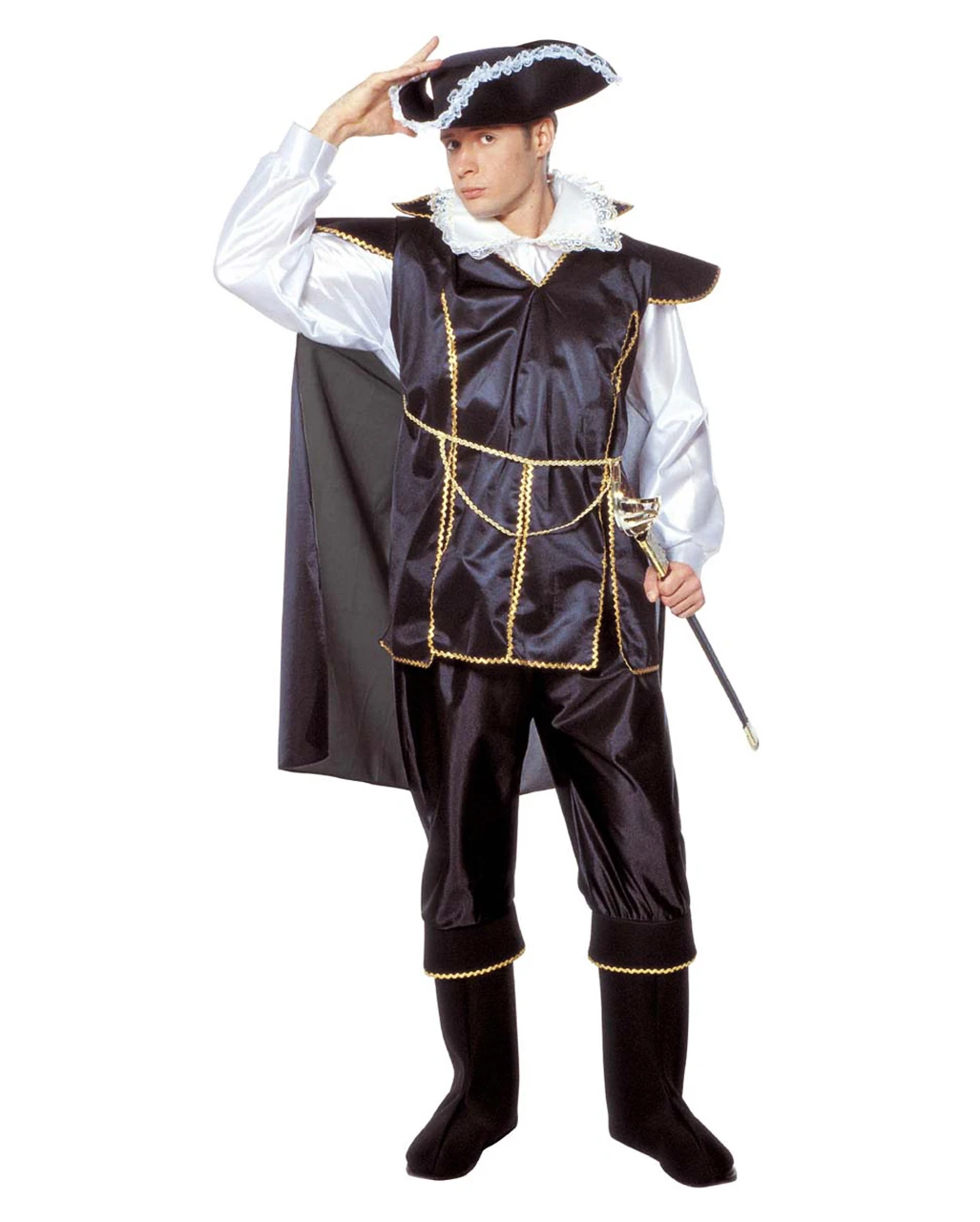 Das wunderschöne Freibeuter Kostüm besteht aus einem weißen Hemd mit Rüschenkragen, einer schwarzen Weste mit angenähtem Umhang, einer Hose mit Stiefelgamaschen und einen schwarzen, mit Rüschen verzierten Seefahrer Hut. Kombinieren kannst du das Korsaren Kostüm Gr. S mit jeder Menge Kostümaccessoires aus unserem Karneval Shop, wie z.B. die Piraten Pistole und der Piratensäbel mit Schädelgriff .