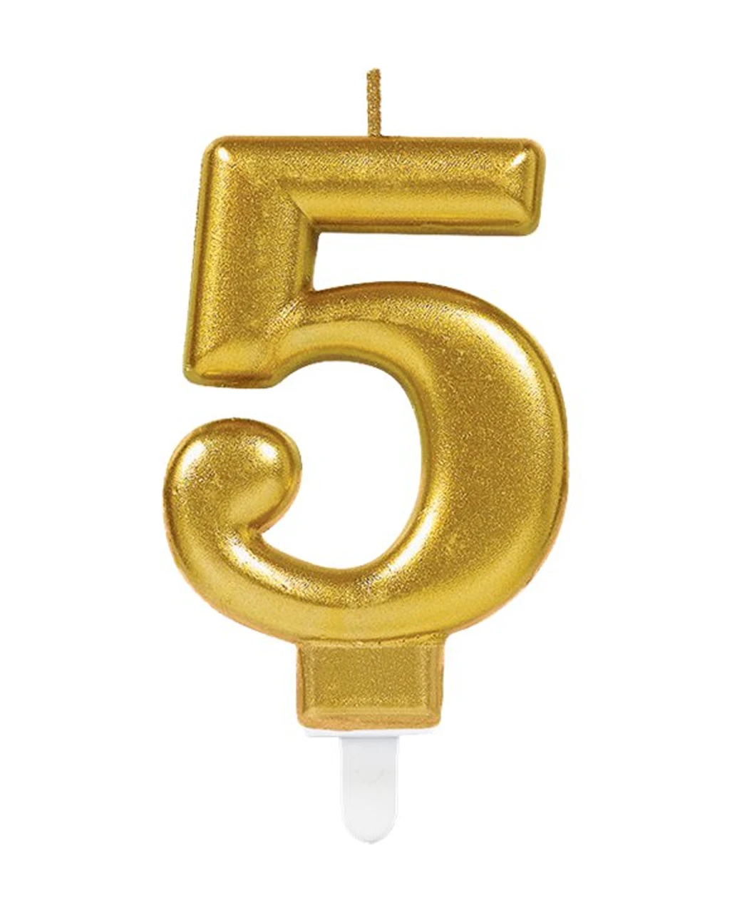 Lieferumfang: 1x Metallic Zahlenkerze 5 Gold
