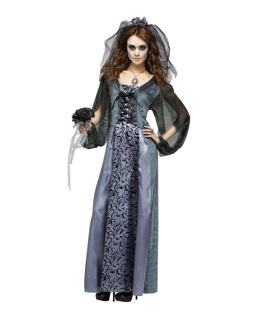 Die Lady im traumhaften Mystery Geister Brautkostüm ist auf der verzweifelten Suche nach ihrem Gemahl, der vor der Vermählung auf See verunglückte. Ihr Brautkleid tragend wandelt sie zwischen den Welten und wird nicht ruhen, bis sie ihn gefunden hat.