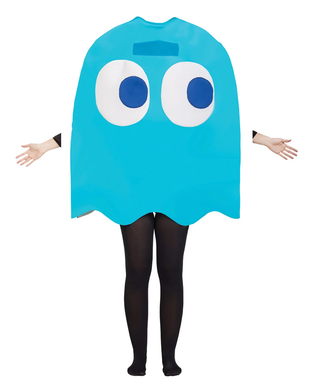 Ob Fasching oder Computer Nerd Motto Party, das Inky Ghost Pac Man Kostüm ist eine witzige Verkleidung für viele Gelegenheiten. Das Kostüm kann entweder als Maske getragen werden, das Sehen wird dabei über einen schmalen Schlitz erlaubt, oder man trägt das Kostüm als Kostüm und steckt seinen Kopf in díe dafür vorgesehene Öffnung für Kopf und Arme. Das Kostüm passt am besten bei normaler Staur und einer Größe von ca. 160 bis 190 cm. Das kräftige Blau und das typische Pac Man Geister Gesicht des lizenzierten Kostüms bringt die Bandai Namco Fans zum Schwärmen. Passende Kostüm Accessoires wie die Schwarze Leggings findest du im Shop.
