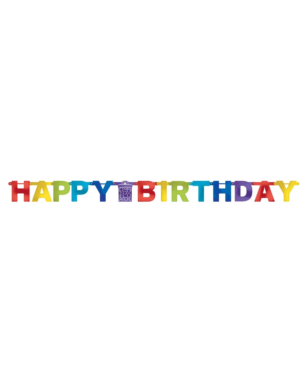 Die Happy Birthday Partygirlande weist eine Spannweite von ca. 2,13m auf, die einzelnen Buchstaben eine Größe von ca. 13,5 x 16cm. Durch die Kunststoffbeschichtung und die solide Verarbeitung mit Metallösen eignet sich die Geburtstags-Girlande sowohl für den Innen- als auch den Außengebrauch. In großen Lettern prangt der Schriftzug „Happy Birthday“ auf der Hänge-Deko, abgetrennt durch ein stilisiertes Geschenk. Schnüre an den Seiten der Happy-Birthday-Kette sorgen dafür, dass die Girlande schnell und unkompliziert an Haken, Schrauben o.ä. aufgehängt werden kann. Noch mehr Geburtstagsdekorationen und Zubehör wie die Riesen Luftschlangen mit Rauten und Luftballons Happy Birthday 10 St. haben wir ebenfalls im Karneval-Universe.de!