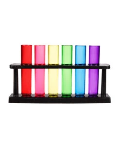 Auch zum Geburtstag oder zur „Breaking Bad“-Motto Party ist das Schnapsglas-Set der Hit. Das Shooter-Set Regenbogen Reagenzglas besteht aus einem schwarzen Ständer aus Kunststoff und sechs kleinen Schnapsgläsern in Form von Reagenzgläsern. Servieren kannst Du in einem unserer vielen genialen Kostüme. Schau Dich einfach mal im Shop um. Dort findest Du auch weitere schöne Deko wie die Regenbogen Papier Girlande 3m.