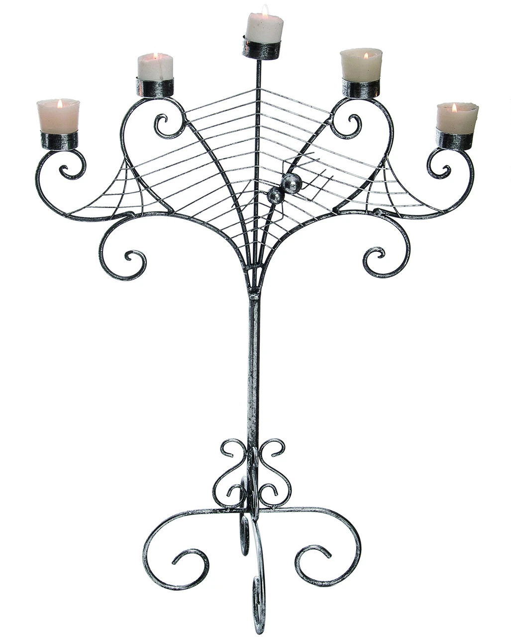 Lieferumfang: 1 x Silberner Metall Spinnweben Kerzenständer