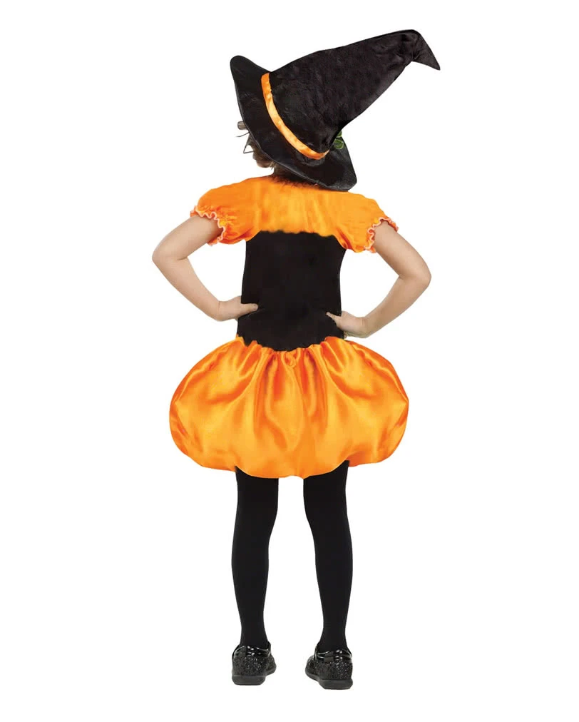 Klassisches Hexenkostüm für Mädchen in den typischen Halloween-Farben