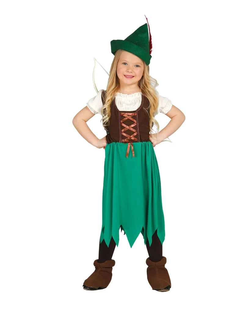Das Süße Bogenschützin Mädchenkostüm macht deine Tochter zur mysthischen Bogenschützin aus dem Sherwood Forest, die gegen die Steuereintreiber des Königs kämpft und die Armen unterstützt.