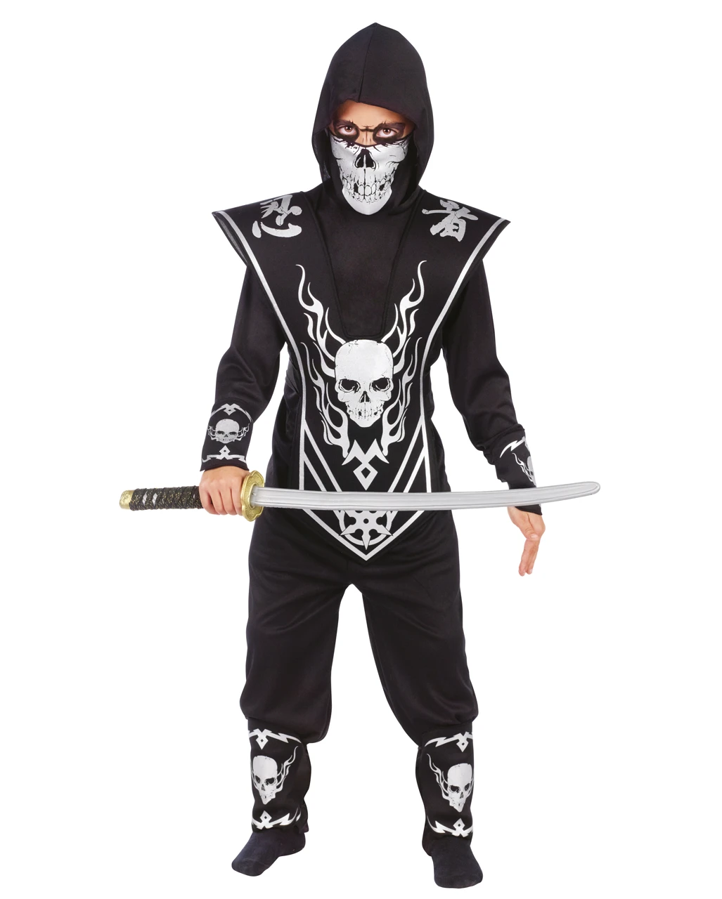Lieferumfang: 1 x Totenkopf Ninja Kinderkostüm