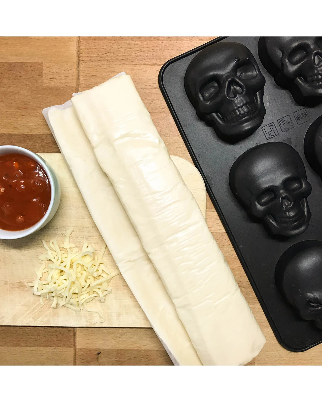 Diese Totenschädel Silikon Backform ist nicht nur zu Halloween hervorragend geeignet. Wann immer du köstliche Muffins, herzhafte Pizza Snacks, Eis oder Pudding genießen möchtest: Mit der Totenschädel Backform aus Silikon gelingen dir allerhand Leckereien. Die Silikon Backform ist hitze- und kältebeständig und somit vielseitig einsetzbar. Auch für das Gießen von Kerze oder Seife ist die Silikon Schädel Backform perfekt geeignet!