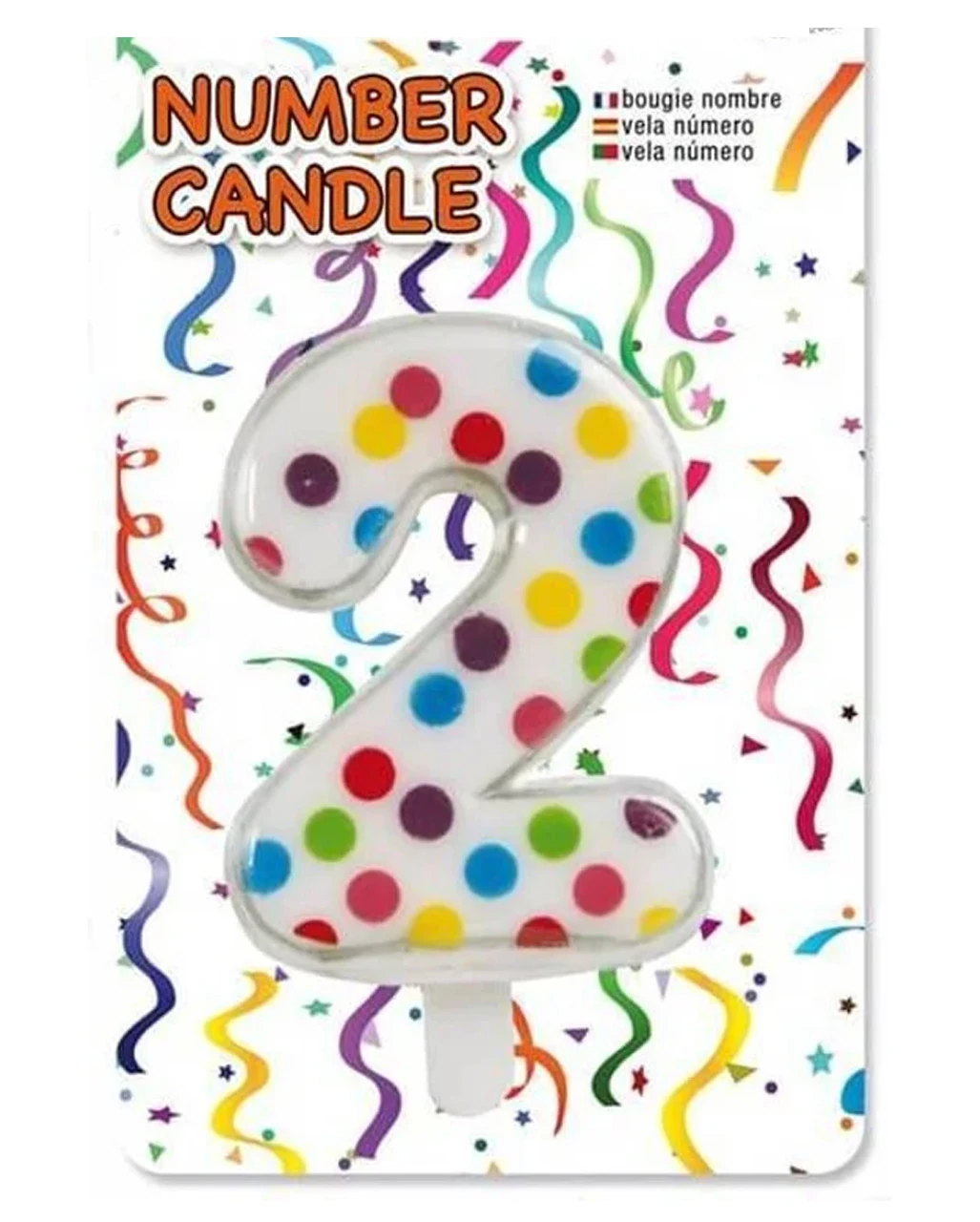 Bestelle jetzt die Zahlenkerze Konfetti Nr. 2 mit bunten Punkten und verwende diese für deine Geburtstagsüberraschung. Mit der 2 als Zahlenkerze lassen sich Torten für Geburtstage und Jubiläen besonders festlich dekorieren. In Kombination mit weiteren Ziffern kann jede beliebige Zahl kreiert werden.