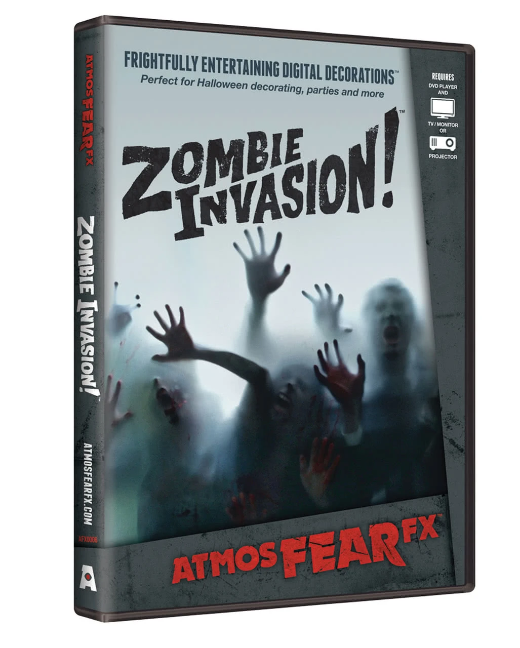 Erlebe mit der Zombie Apocalypse TV Halloween Effekt DVD von AtmosFEARfx, wie grauenhafte Zombies versuchen durch Wände und Türen zu gelangen, dich im Schwarm zu verfolgen. Die blutrünstige Horde versucht alles, um dich zu attackieren und damit an Frischfleich zu gelangen. Die Halloween Effekt DVD beinhaltet 4 verschiedene Szenen mit Sound, plus 4 Bonus Spezial Effeket und lassen sich am besten mit Beamer an Wände, Decken und Fenster projizieren, lassen sich aber auch prima am Fernseher oder Monitor zeigen. Die Möglichkeiten die Zombie Apokalypse TV Halloween Effekt DVD einzusetzen sind fast unbegrenzt. Verschiedene Einstellmöglichkeiten lassen die Halloween DVD in unterschiedlichen Versionen laufen, als durchlaufender Loop oder ein einzeln angewähltes Motiv als Dauerschlaufe. Der Beamer kann dabei horizontal oder vertikal angebracht werden. Extrem coole Idee für deine nächste Halloween Party! Weitere Halloween Effekt DVD Ideen wären dann noch Geister Erscheinung und die Untoten Portraits.
